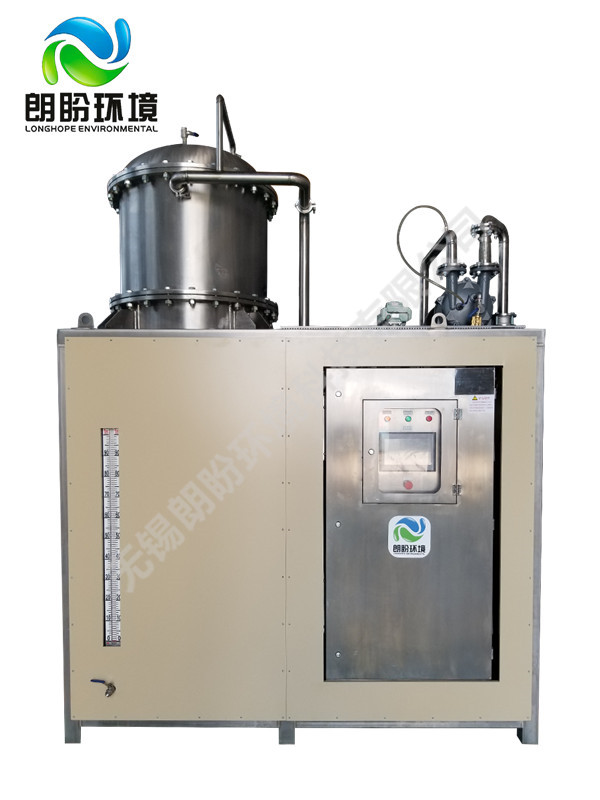 低溫蒸發(fā)結(jié)晶器的原理是物料的沸點(diǎn)隨著壓強(qiáng)的降低而降低。低溫節(jié)能濃縮設(shè)備整體保持真空狀態(tài),蒸發(fā)室的真空度約為95%~97%,在此壓強(qiáng)下水的沸點(diǎn)為35℃~37℃,系統(tǒng)無(wú)需配備進(jìn)料泵,利用蒸發(fā)室的負(fù)壓將物料吸進(jìn)蒸發(fā)室,通過(guò)強(qiáng)制循環(huán)方式將物料循環(huán)霧化,傳輸至換熱器上,物料中水分被蒸發(fā),物料連續(xù)循環(huán)霧化,通過(guò)蒸發(fā)室液位自動(dòng)補(bǔ)料,濃度達(dá)到要求后作為濃縮液排出設(shè)備。濃縮液一般粘度較大,需采用泵抽出。