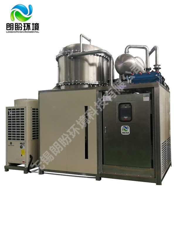 低溫?zé)岜谜舭l(fā)器由無錫朗盼環(huán)境科技有限公司主持研發(fā)生產(chǎn),是其全系列工業(yè)廢水處理技術(shù)產(chǎn)品中及其重要的一環(huán)。 V-HP系列真空熱泵蒸發(fā)系統(tǒng),獨特地采用高效的壓縮式熱泵技術(shù),結(jié)合合適的真空運行區(qū)間,使得對于各種工業(yè)廢水的蒸發(fā)濃縮處理具有了廣泛的適應(yīng)性,并且使得處理能耗大幅度的下降,不但讓各種廢水的濃縮減量在技術(shù)上更加合理,更重要的是讓應(yīng)用用戶在經(jīng)濟(jì)上樂于接受。 V-HP系列真空熱泵蒸發(fā)系統(tǒng),標(biāo)準(zhǔn)工況下其主機(jī)能效比達(dá)到9以上,遠(yuǎn)遠(yuǎn)的超過了多效蒸發(fā)器(一效、二效、三效、四效能效比分別為0.9,1.7,2.4,3.0)擴(kuò)容濃度蒸發(fā)器(能效比為4.2)。更為重要的是,由于其采用與以往不同的技術(shù)組織,其全過程運行溫度低于40℃,因而在用于工業(yè)廢水場合并伴有熱敏性物質(zhì)回收的應(yīng)用中顯得非常合適。同時因為該系統(tǒng)構(gòu)成中優(yōu)化了的熱泵系統(tǒng)具有足夠?qū)挿旱墓r適應(yīng)性,在針對廢水液中常常遇到的蒸發(fā)濃縮過程中,沸點升高的門檻有著自適應(yīng)的能力,并且依然能保持其很高的能效比。(例對NaOH 25%的溶液,其主機(jī)能效比依然可達(dá)6.5)